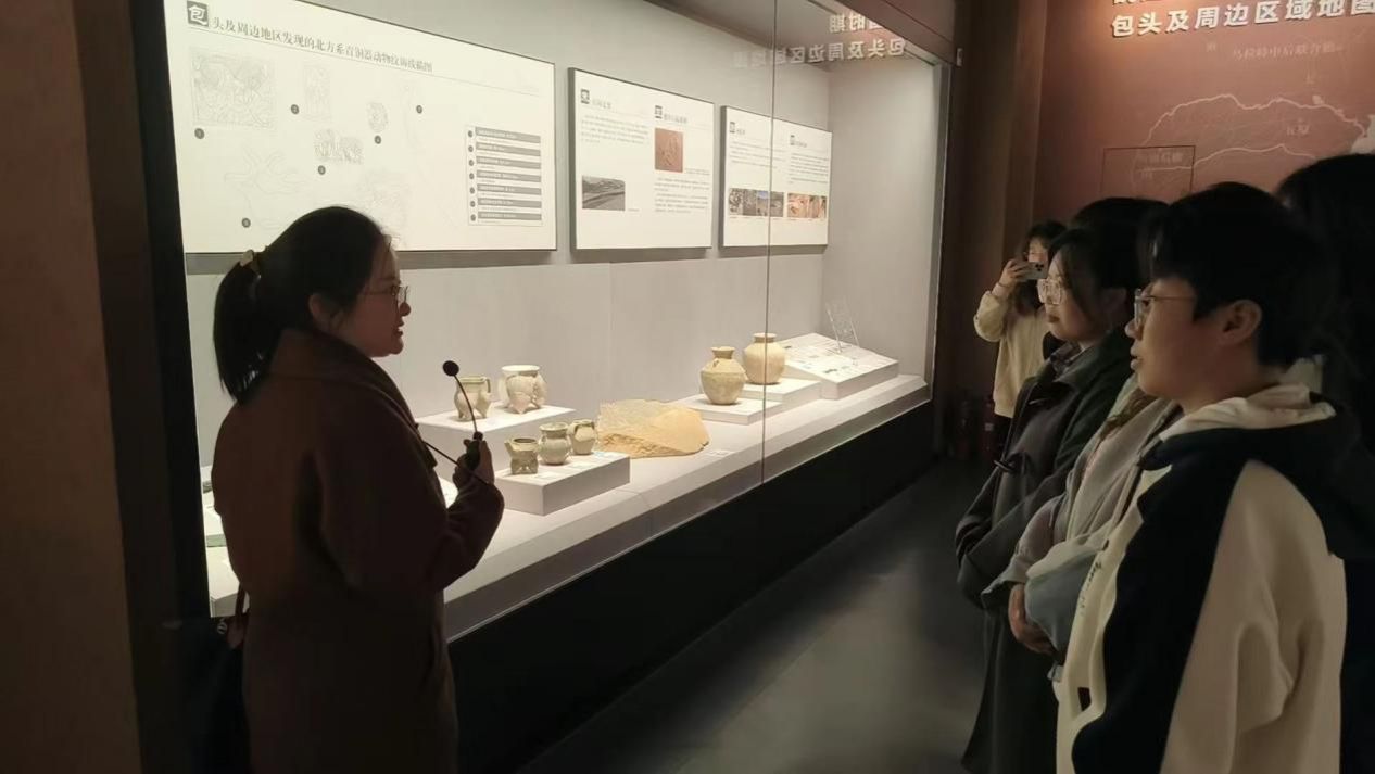 包头市博物馆作为一座承载着丰富历史文化的宝库,为学生们提供了一个生动的实践教学场所。在博物馆中,师生们穿梭于各个展厅,仿佛踏上了一场跨越时空的旅程。从古老的文物到珍贵的历史文献,从传统的民俗文化到波澜壮阔的近现代史,每一件展品都像是一本无声的教科书,向师生们诉说着历史的沧桑与辉煌。同时,师生们看到了劳动人民在历史进程中的伟大创造,深刻体会到了人民群众是历史的创造者这一马克思主义基本原理;目睹了历史的变迁、社会的发展,更进一步理解了生产力与生产关系、经济基础与上层建筑的辩证关系等原理。