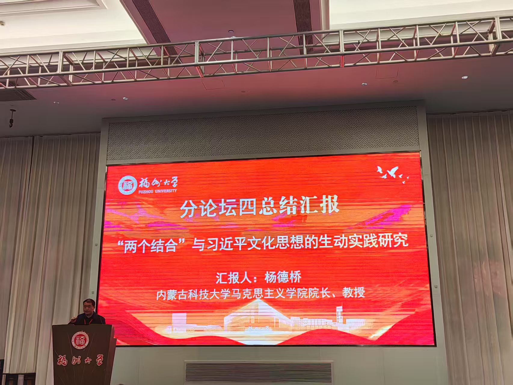 2025321日至23日,全国高校马克思主义理论学科研究会第64次学科论坛暨“‘两个结合’与习近平文化思想研究”学术研讨会在福州大学召开。学院院长杨德桥教授应邀出席会议。根据会议安排,杨德桥教授主持了第四分论坛“‘两个结合’与习近平文化思想的生动实践研究”的研讨活动,在分论坛作了专题发言,并代表分论坛向大会作总结报告。