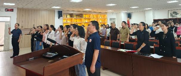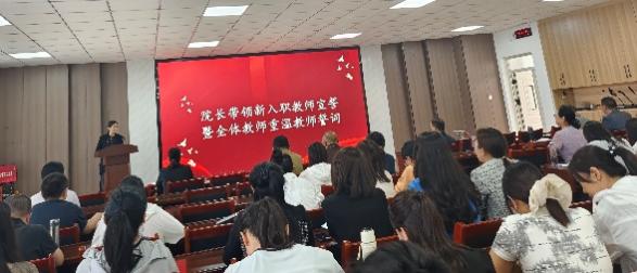 杨德桥院长带领新入职教师宣誓,将弘扬教育家精神纳入宣誓内容,全体教师共同重温誓词,进一步增强职业责任感。