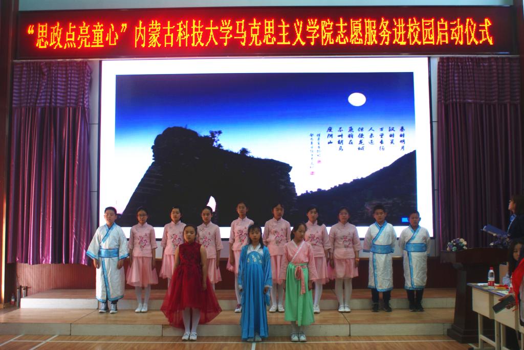 520日,“思政点亮童心”志愿服务活动启动仪式在包钢十八小举行,“思政点亮童心”志愿服务活动由yl6809永利官网集团和包钢十八小共同举办。yl6809永利官网集团党总支书记刘玉明带领学院党政人员、志愿服务学生参加启动仪式,参加仪式的还有昆区教育局副局长赵晓文,包钢十八小校领导和带教教师。