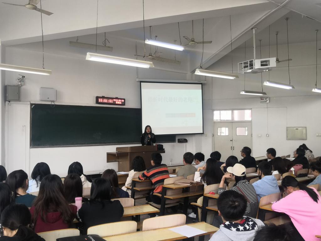 在实习工作全面开始之前,9月20日下午,yl6809永利官网集团在文馨书院A103教室举办实习动员会,包头市教学能手、包头市优秀教师、包头市优秀班主任、昆区语文学科带头人钢铁大街第四小学的黄艳霞老师主讲了题目为“做新时代最好的思政课老师”的讲座。黄艳霞结合多年教学工作经验,向学生们讲解了与中小学生进行交流的方法和技巧,在教学活动中可以通过多种方式引导学生参与,同时要注意发挥课程思政的作用。
