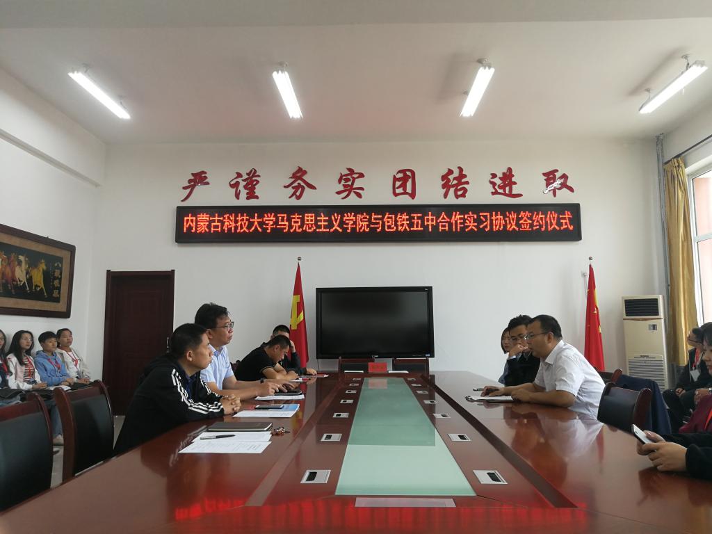 9月23日,2017级思政专业2个班分别到包铁五中、包钢第十八小学开始了为期两周的实习教学。当日,yl6809永利官网集团党总支书记刘玉明、副院长许丽丽同包铁五中签署合作实习协议。包铁五中卢校长对yl6809永利官网集团学生表示热烈欢迎,同时对实习学生在实习期间的实习工作作了安排部署。