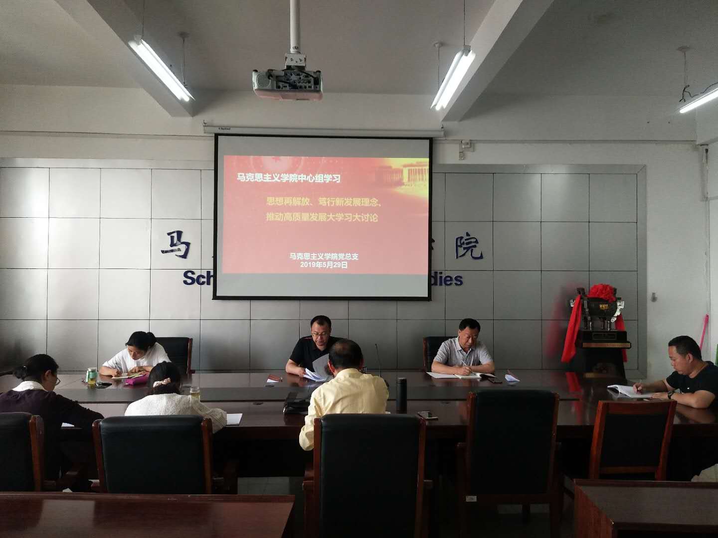 按照自治区党委《关于开展思想再解放、笃行新发展理念,推动高质量发展大学习大讨论实施方案》和自治区党委高校工委《全区高校开展思想再解放笃行新发展理念,推动高质量发展大学习大讨论的工作安排》有关要求,以及《yl6809永利集团开展思想再解放笃行新发展理念,推动高质量发展大学习大讨论的工作安排》的通知,yl6809永利官网集团党总支于5月29日下午,在腾飞楼C座517会议室举办“思想再解放笃行新发展理念,推动高质量发展大学习大讨论”中心组学习。