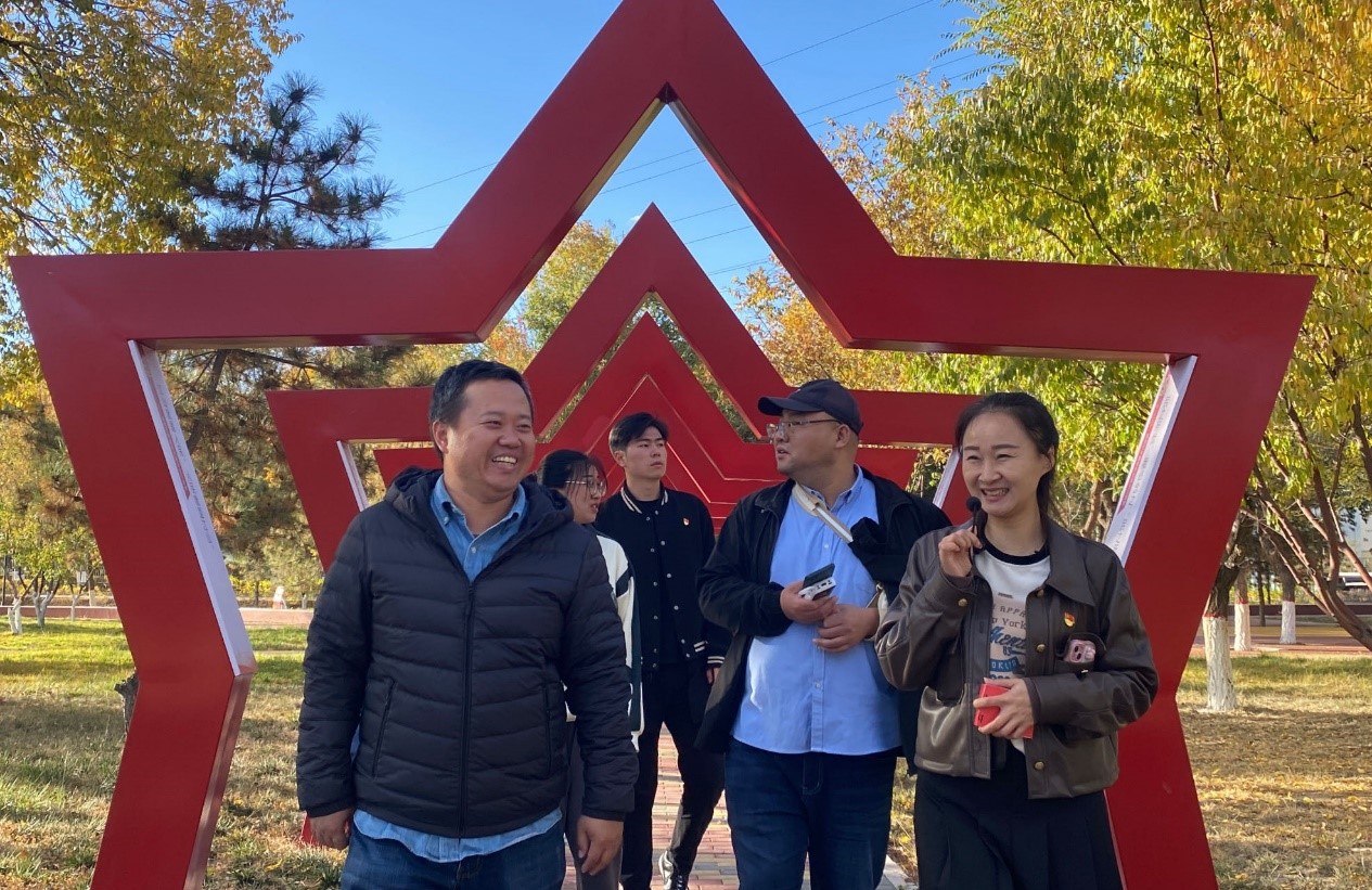 以“踔厉奋发,勇毅前行”屏风为起点,全体党员跟随讲解员的脚步沿着环形健步道开始了本次学习。在“红石榴籽凉亭”,讲解员为全体党员讲述了齐心协力建包钢、三千孤儿入内蒙等历史佳话,穿过“五星拱门”,全体党员在“初心广场”上面向党旗,重温入党誓词。