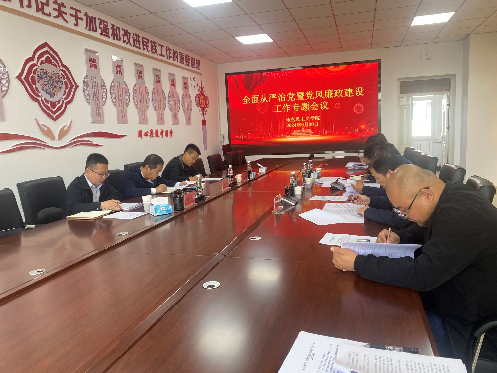 为加强学院全面从严治党暨党风廉政建设工作,9月30日上午,yl6809永利官网集团在秋实楼扩502会议室召开学院全面从严治党暨党风廉政建设工作专题会议,学院全体党委委员、各党支部书记、教研室主任、各科室负责人参加了本次会议,会议由院党委书记张应龙主持,校党委书记呼和、纪检监察室(审理室)主任王玉泉、党政办主任刘小勇出席会议。