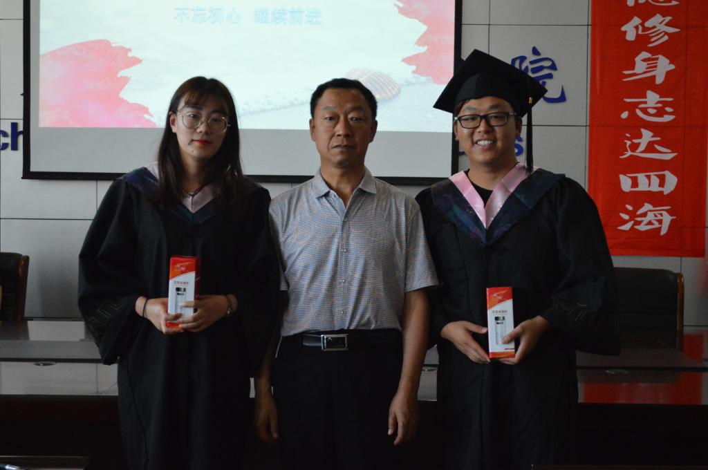 学院杨永旺副书记为考取研究生的同学颁发纪念品,鼓励他们继续深造,不断创新。