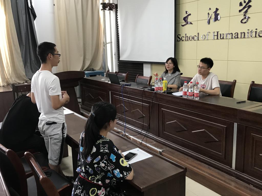 两位校友汇报完毕后,进行了现场问答环节。在场的研究生、本科生从自身的学习、生活以及社会实践等方面踊跃提问,两位校友耐心细致地进行了全面解答,交流会现场气氛热烈而活泼。交流会进行了将近3个小时,最后在同学们经久不息的热烈掌声中圆满结束。