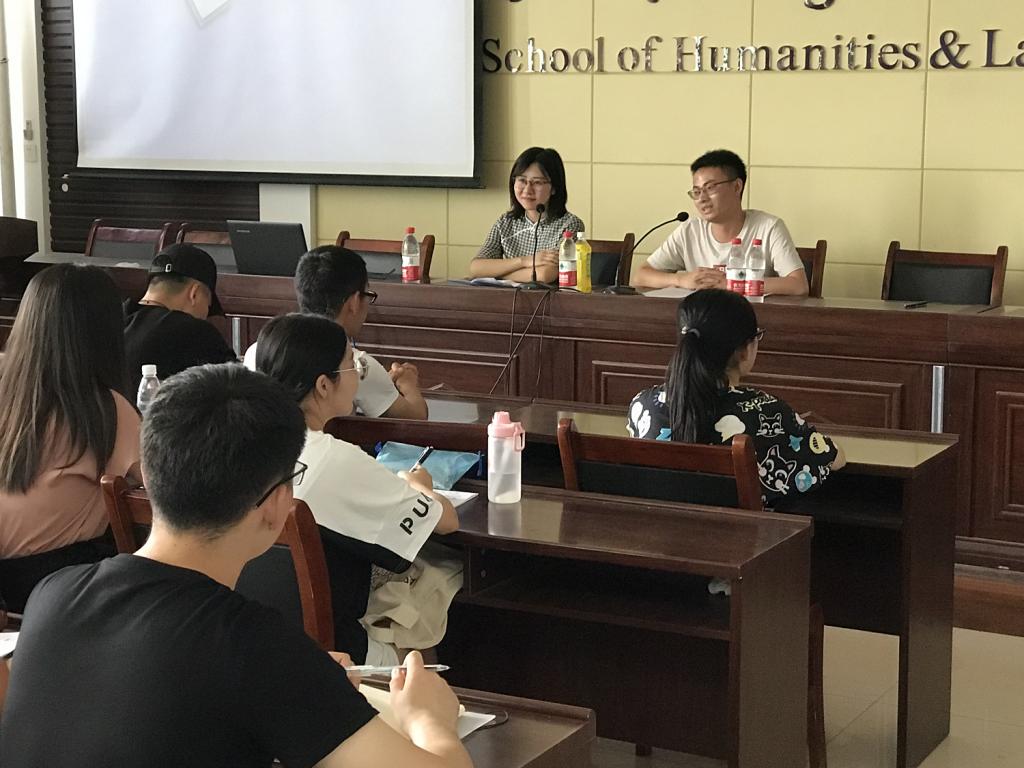 付励恒从考研备考、复试准备、调剂选择以及大学期间的实习实践等方面交流分享了自己的宝贵经验。于颖从英语学习、社会实践、读研感悟以及考博备战等方面与同学们作了汇报交流。