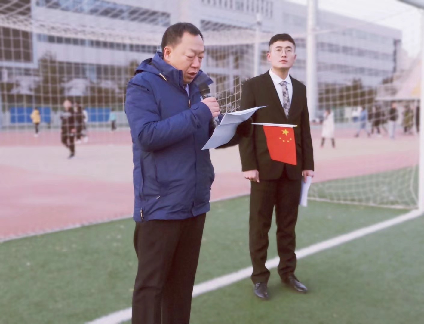 7点30分,英姿飒爽的国旗班队员们护送鲜艳的五星红旗入场,在雄壮的国歌声中,五星红旗冉冉升起,全体师生高唱国歌,向国旗行注目礼,表达对祖国的无限热爱之情。随后学院党总支副书记、副院长杨永旺讲话,指出“新时代的中国青年要听党话、跟党走,做新时代的奋进者、开拓者、奉献者,让爱国主义的伟大旗帜始终高高飘扬”。学生代表王榆进行了题为《牢记青春使命我与祖国共奋进》的国旗下演讲,其中提到“青年大学生要胸怀忧国忧民之心、爱国爱民之情,把自己的人生目标同国家和民族的命运紧密联系在一起,在实现中国梦的生动实践中放飞青春梦想”。