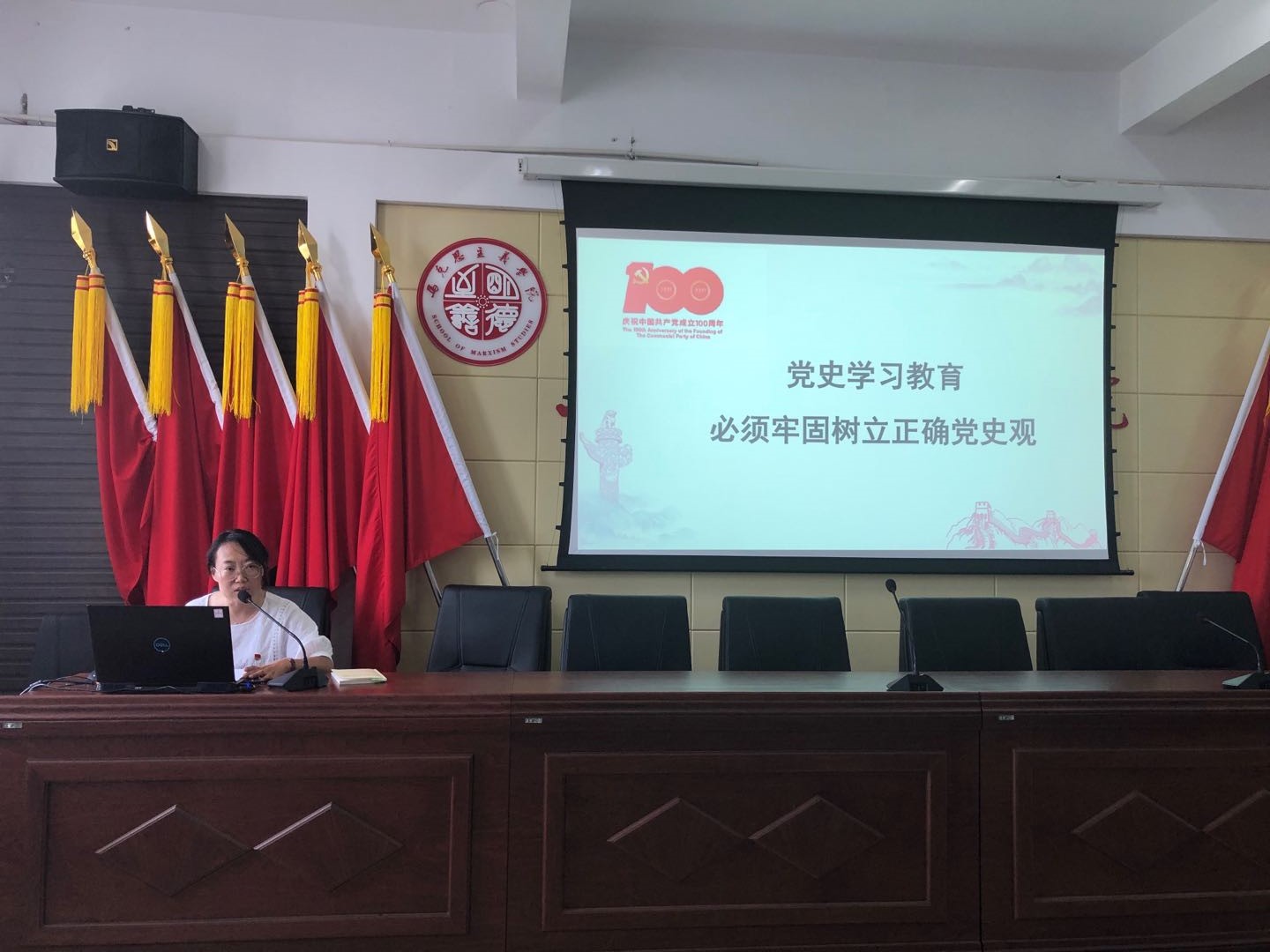 柴艳莎老师主要从“必须高举马克思主义旗帜,坚持历史唯物主义”、“必须坚持实事求是思想路线”、“必须大力弘扬学以致用的优良学风”、“必须旗帜鲜明反对历史虚无主义”、“必须树立大历史观”五个方面来详细解读如何牢固树立正确党史观。