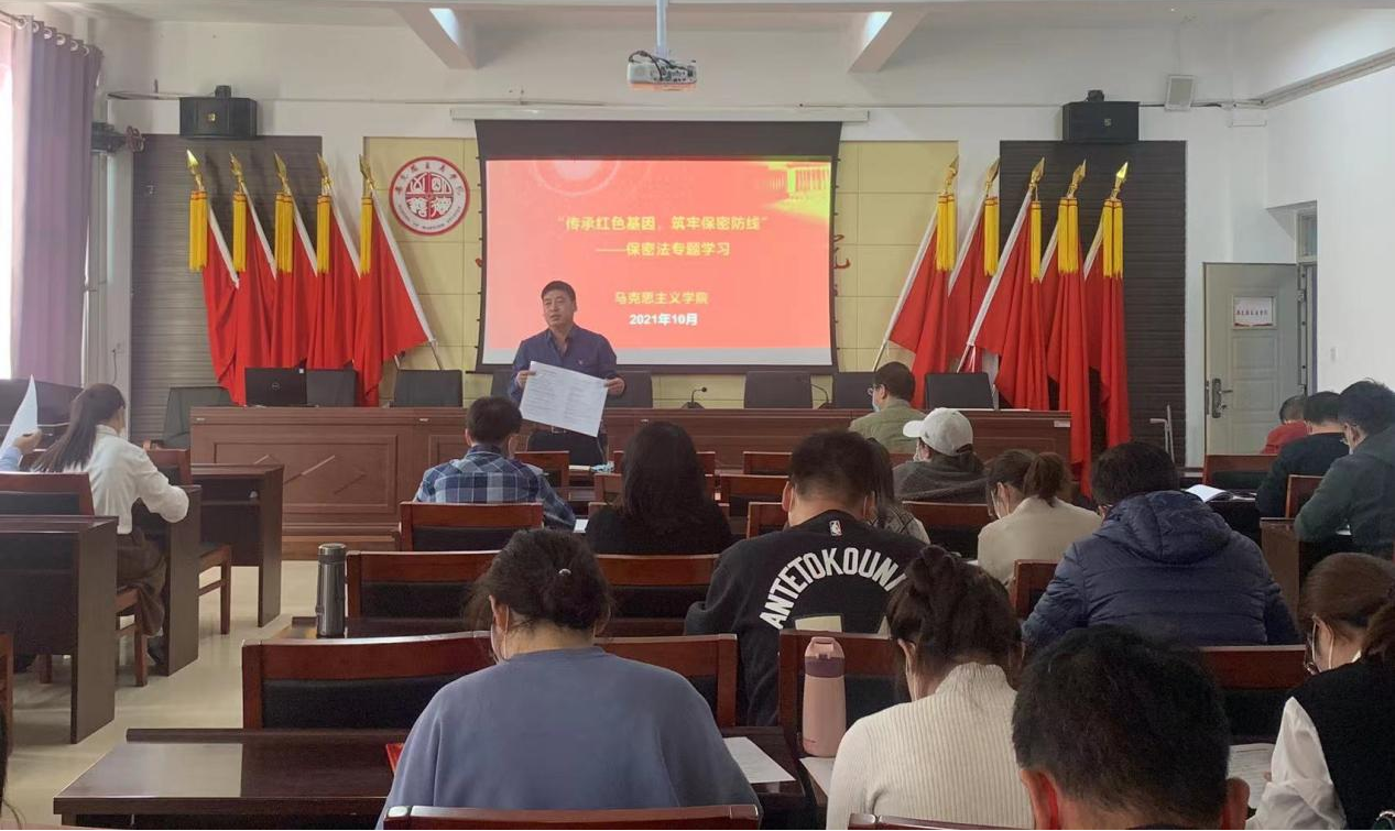 根据内蒙古自治区、学校《关于开展“保密法宣传月”活动的通知》文件要求,为进一步贯彻落实保密法治宣传精神,切实增强全体师生的保密法治意识,广泛普及保密常识,全面提升保密业务工作能力。10月28日,yl6809永利官网集团组织开展“保密法宣传月”专题活动,主题为“传承红色基因,筑牢保密防线”,全体教职工、全体党员参加。