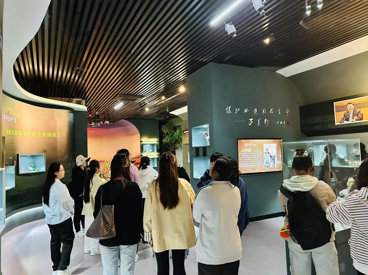 习近平总书记叮嘱要用心治理、精心呵护乌梁素海这颗“塞外明珠”,为子孙后代留下一个山青、水秀、空气新的美丽家园。首先,师生们抵达乌梁素海生态保护区,学习体悟山水林田湖草沙一体化保护和系统治理的典型经验,领略北斗卫星导航自动耕种的现代农业示范园区,参观馆藏几十种国家级保护动物的鸟展馆,深刻领悟人与自然和谐共生的实践智慧。