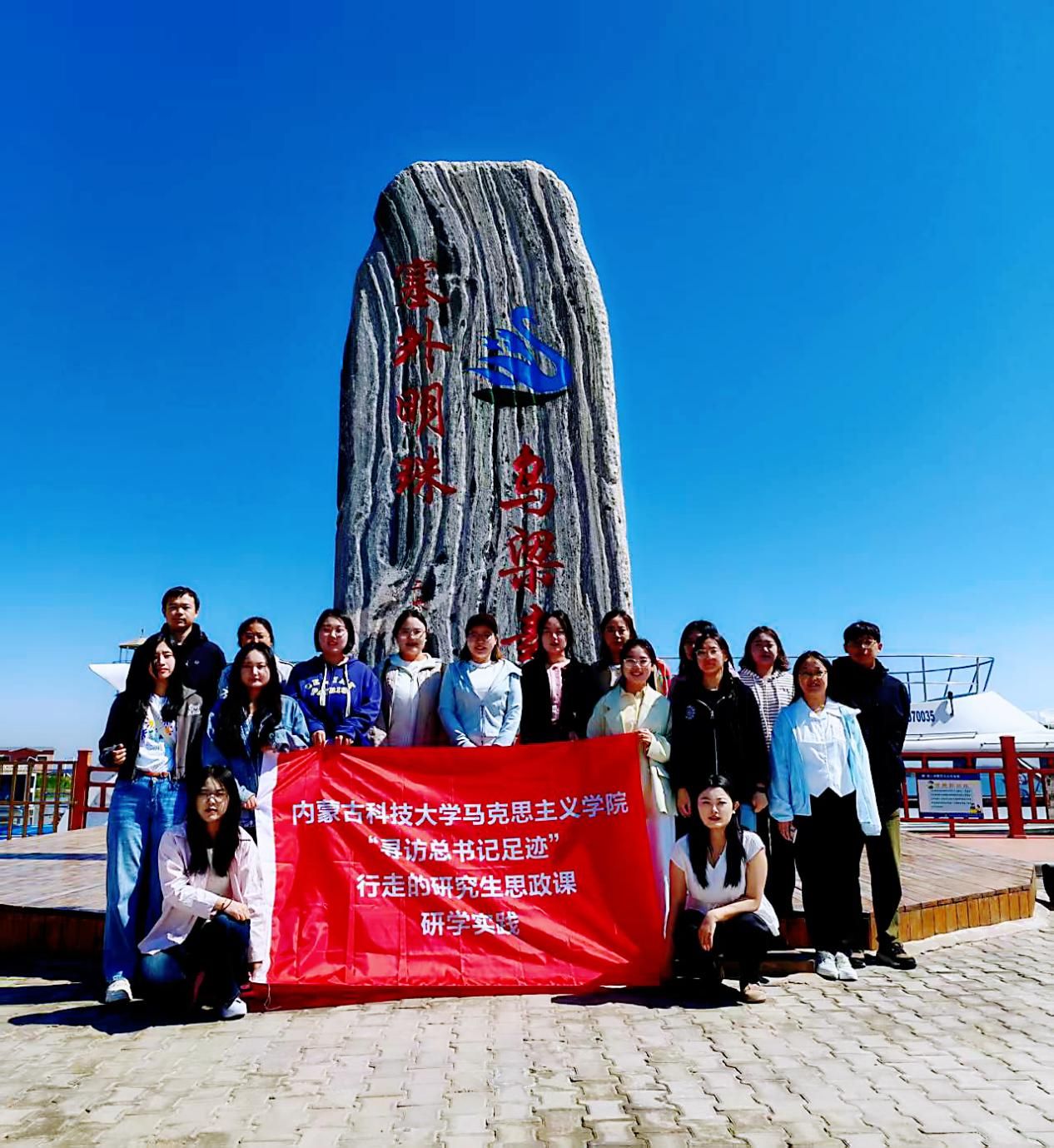 2023年习近平总书记考察内蒙古时的重要讲话在内蒙古各族干部群众中引起强烈反响。2025年5月10日,yl6809永利官网集团研究生沿着习近平总书记考察内蒙古的足迹,先后来到巴彦淖尔乌梁素海生态保护区、现代农业示范园区、国营新华林场和黄河水利文化博物馆,开展“寻访习近平总书记足迹”行走的思政课研学,在实地探访中深刻感悟和学习领会习近平生态文明思想在内蒙古的生动实践。
